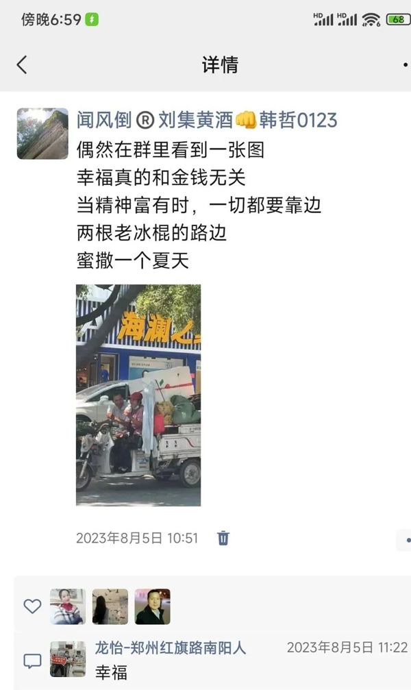 偶然在群里看到一张图,幸福真的和金钱无关。当精神富有时,一切都要靠边,两根老冰棍的路边,蜜撒一个夏天。