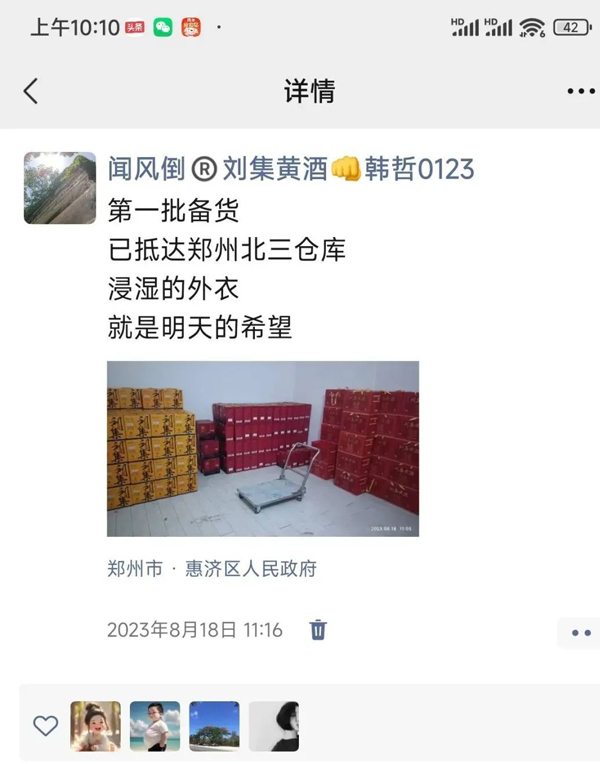 同样是在8月份,我们在郑州北四环惠济区政府附近,租下了闻风倒黄酒在郑州的第一个中转仓库。古之兵法有云:兵马未动、粮草先行,这个仓库,就是我们设在郑州市场的第一个粮草补给站。以备应急、以示决心。在郑州北茶城艺茂国际仓的郑福星郑州运营中心,我们也设下了一个小小的展厅,在战略合作伙伴肖总的支持下,郑州的业务也在顺利的开展。