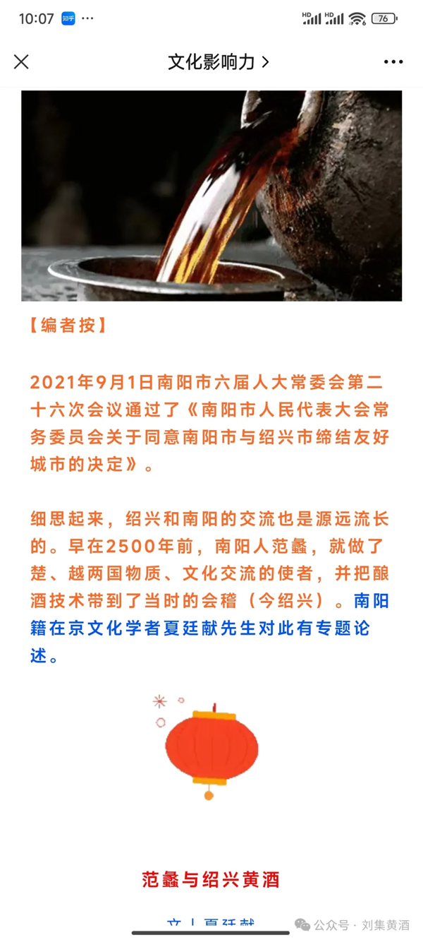 文化加身的南阳,与浙江绍兴一样,同样适合传统古老的中国黄酒,滋养、扎根、遍地生花,酒香万家遍华夏。
